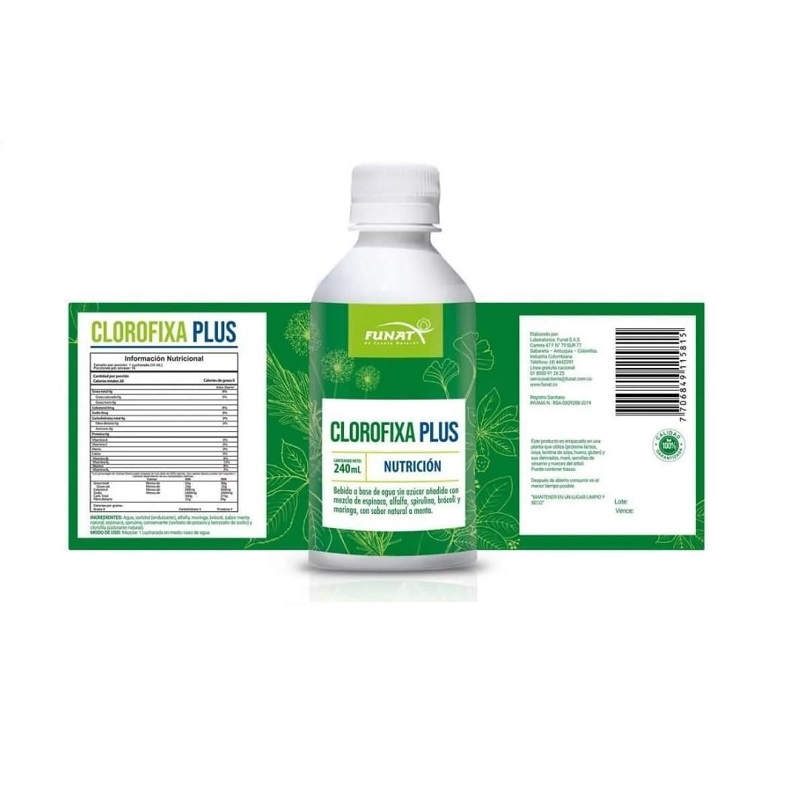 Función: Facilita el transporte del oxígeno en la sangre, ayuda a mantener saludables los órganos más importantes del cuerpo. Ingredientes: Agua, sorbitol, Espinaca, alfalfa, spirulina, brócoli, moringa, sabor natural a menta, conservante y clorofila